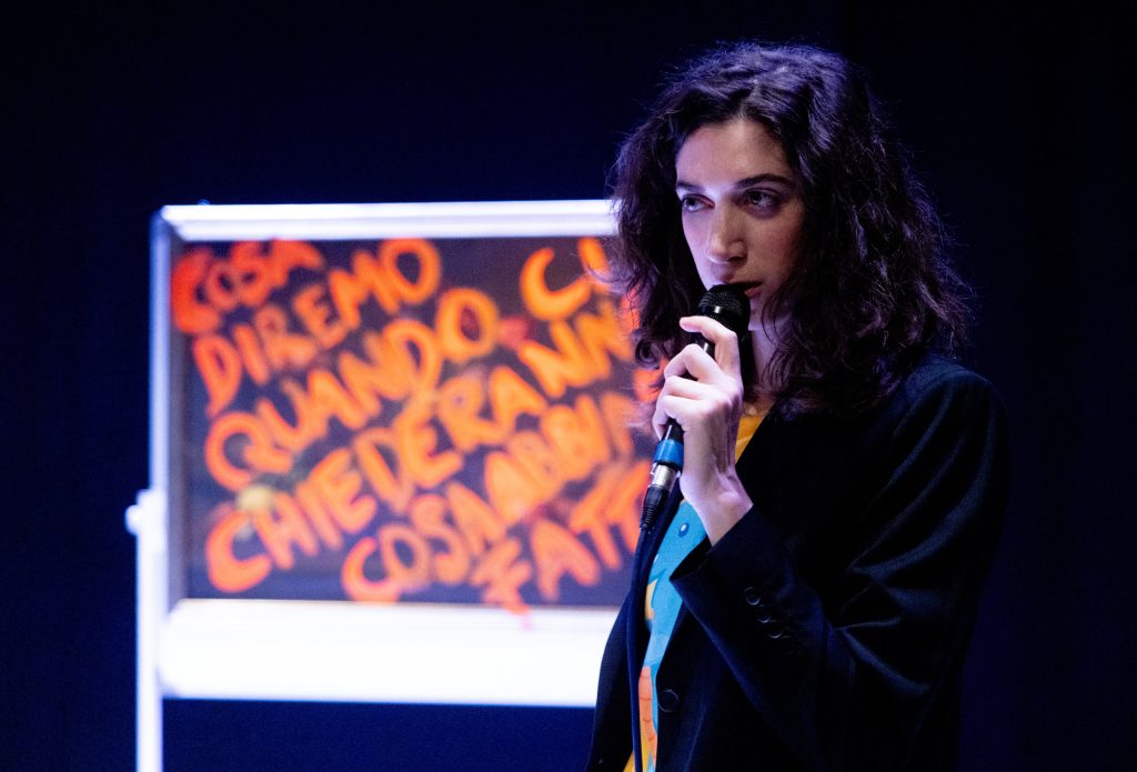 La futura classe dirigente, un progetto di Caterina Marino – drammaturgia e regia Caterina Marino – con Federico Brugnone, Sara Mafodda, Caterina Marino, Daniele Paoloni – costumi Accademia italiana – aiuto regia Marco Fasciana – produzione 369gradi, Cranpi, La Corte Ospitale con il contributo di MiC Ministero della Cultura – residenza produttiva Carrozzerie | n.o.t, Humus artistə nel terriorio/IAC Centro Arti Integrate, Teatro Biblioteca Quarticciolo – Mattatoio Roma 21 e 22 ottobre 2025